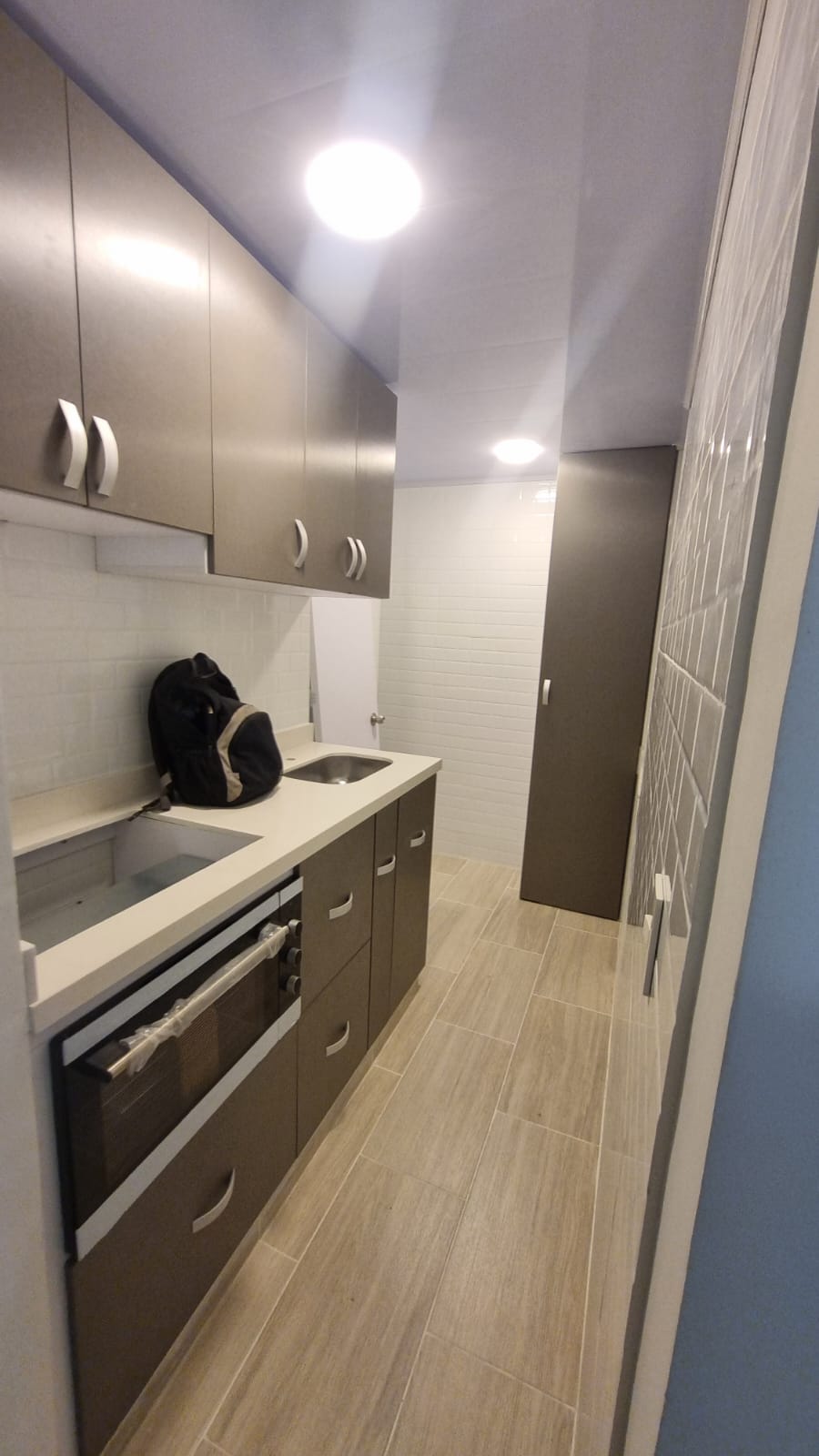 Cocina y baño funcionales, pero en colores distintos a los que hubiera preferido.
