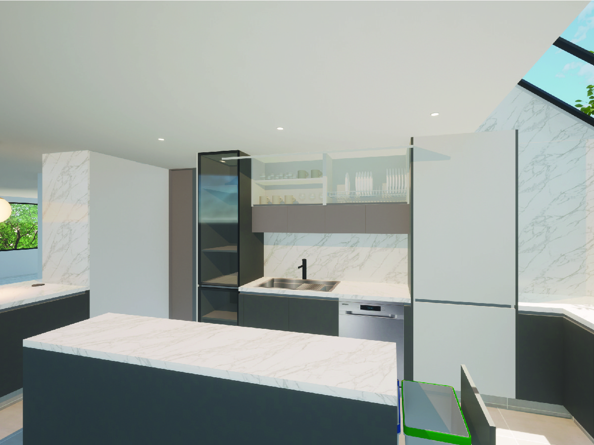 La cocina es el corazón de los hogares. Nuestros clientes querían que este lugar tuviera una transformación completa de lo que había anteriormente. Poder proponer una distribución que se ajuste a las cualidades del espacio y a las necesidades de sus usuarios, que a la vez tenga un diseño limpio y que perdure con el tiempo.