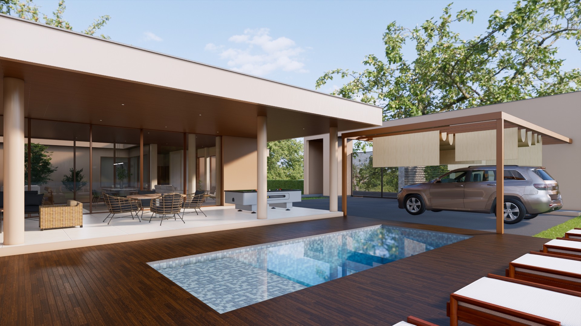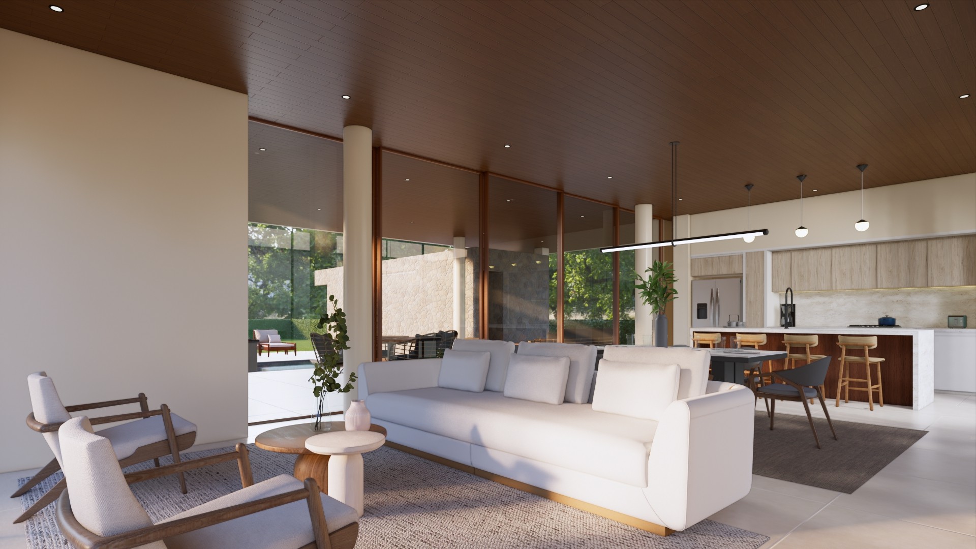 Casa U es una vivienda concebida bajo el concepto de conexión y calidez, donde todos los espacios se articulan visual y funcionalmente alrededor de un amplio jardín central. Este elemento actúa como eje organizador, promoviendo la interacción entre las diferentes áreas de la casa y creando un ambiente acogedor y armonioso que integra interior y exterior de manera fluida.