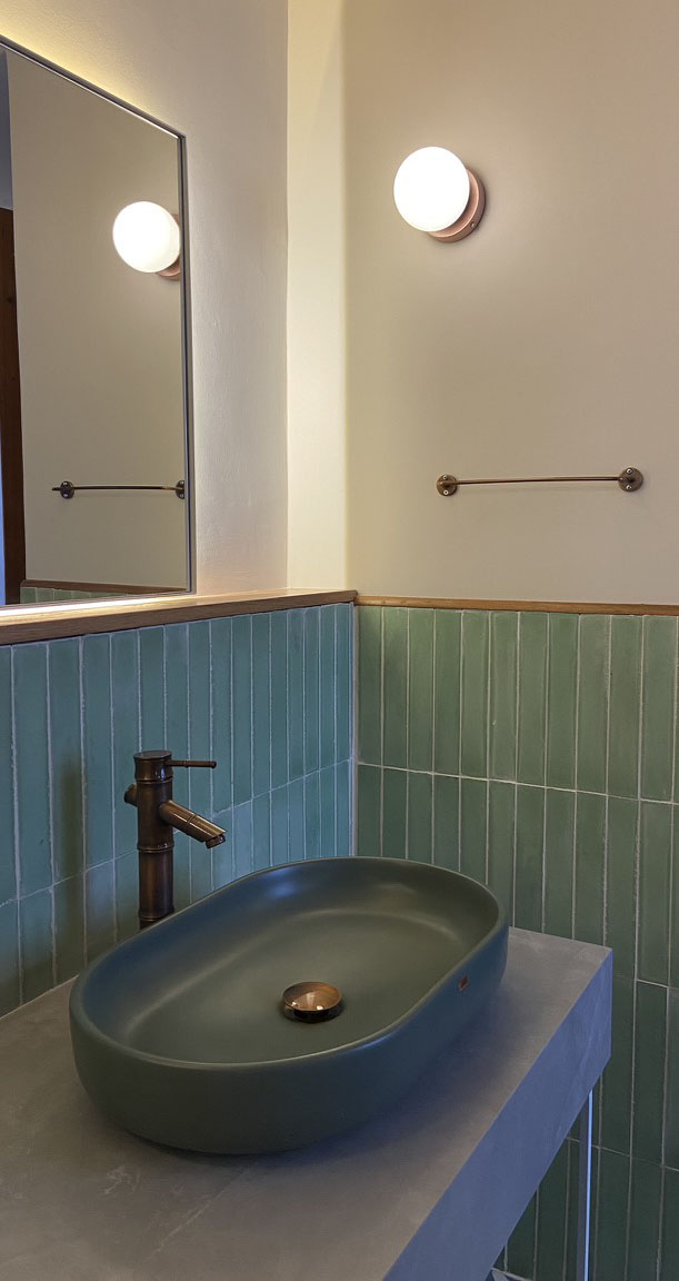Tonalidades pasteles contrastadas con tonos primarios y materiales rústicos hechos a mano hacen de este espacio un lugar de escape a la vida de ciudad agitada y veloz.